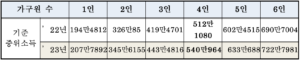 보건복지부에서 발표한 현재 한국의 중위소득 입니다.